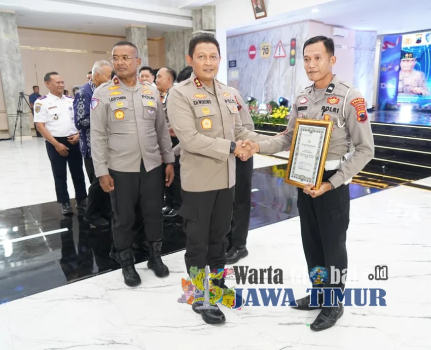 PEKALONGAN, WARTAGLOBAL.id -- Anggota Satlantas Polres Pekalongan, Aipda Purwanto, menerima penghargaan dari Kapolda Jawa Tengah Irjen. Pol. Ribut Hari Wibowo, S.H., S.I.K., M.H. dalam acara tasyakuran Hari Ulang Tahun (HUT) Lalu Lintas ke-70. Acara digelar di Gedung Borobudur Mapolda Jateng, Senin (22/9/2025).