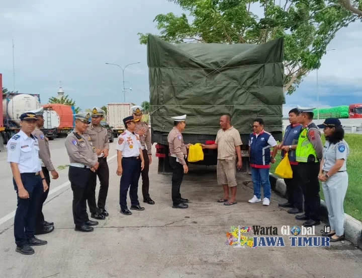 Satlantas Polres Brebes bersama Instansi terkait menyapa sopir truk di Jalur Pantura Brebes. Kegiatan ini untuk meningkatkan keselamatan dan pencegahan kecelakaan melalui edukasi dan sosialisasi, Selasa (28/10/25)BREBES, WARTAGLOBAL.id --