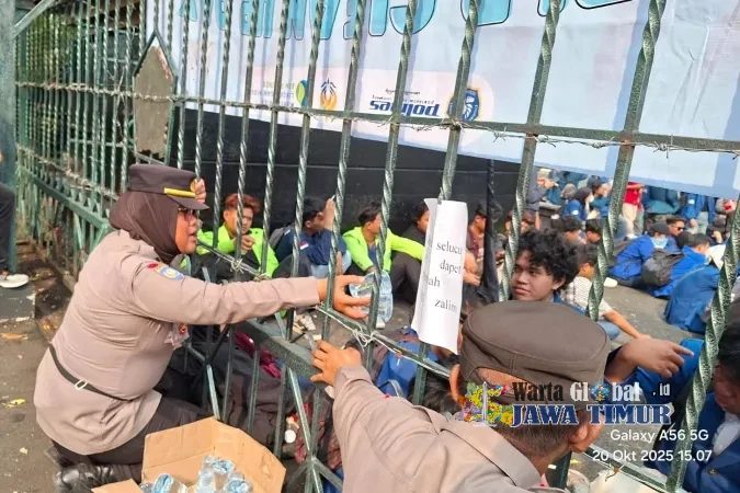 Momen humanis juga tampak ketika Polwan negosiator berinteraksi hangat dengan beberapa pengunjuk rasa dari balik pintu gerbang. Di tengah cuaca yang terik, petugas bahkan membagikan air mineral kepada para pengunjuk rasa agar tidak dehidrasi saat berorasi di bawah terik matahari.