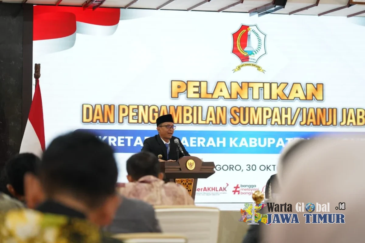 Bojonegoro – Warta global.id.Jatim,- Bupati Bojonegoro Setyo Wahono resmi melantik Edi Susanto sebagai Sekretaris Daerah (Sekda) Kabupaten Bojonegoro, dalam upacara pelantikan yang berlangsung di Ruang Angling Dharma, Kantor Pemkab Bojonegoro, Kamis (30/10/2025).