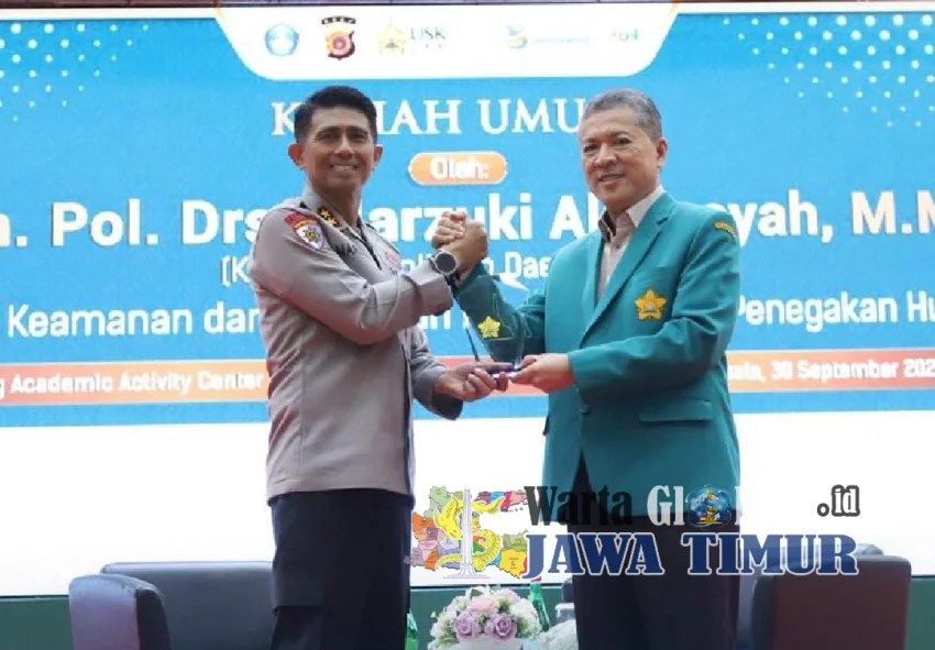 WARTAGLOBAL.ID|Banda Aceh – Kapolda Aceh, Irjen Pol. Marzuki Ali Basyah, memberikan kuliah umum yang inspiratif di Universitas Syiah Kuala (USK), Banda Aceh, pada hari Selasa, 30 September 2025. Acara yang berlangsung di Gedung AAC Dayan Dawood ini dihadiri oleh ratusan mahasiswa dari berbagai fakultas, menunjukkan antusiasme besar terhadap isu keamanan dan ketertiban masyarakat (kamtibmas).