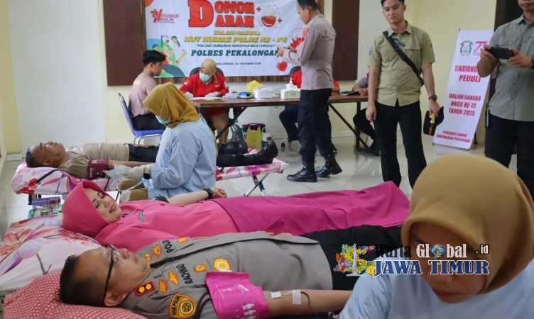 Kapolres Pekalongan, AKBP Rachmad C Yusuf, S.I.K., M.Si turut serta menyumbangkan darahnya dalam kegiatan Bakti Sosial Donor Darah Serentak dalam rangka menyambut HUT Humas Polri ke-74, Rabu (22/10/25).