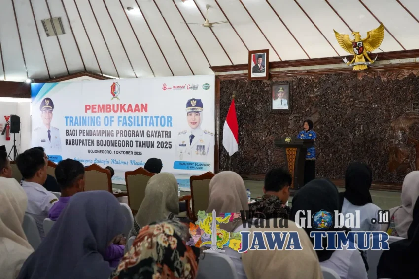Bojonegoro, Warta global id.Jatim. Rabu 1 Oktober 2025 – Pemerintah Kabupaten Bojonegoro melalui Dinas Peternakan dan Perikanan secara resmi membuka Training of Fasilitator (TOF) bagi Pendamping Program Gerakan Beternak Ayam Petelur Mandiri (GAYATRI). Kegiatan yang berlangsung di Pendopo Malowopati ini dibuka langsung oleh Wakil Bupati Bojonegoro, Nurul Azizah, dan bertujuan untuk memperkuat kemandirian ekonomi masyarakat desa.