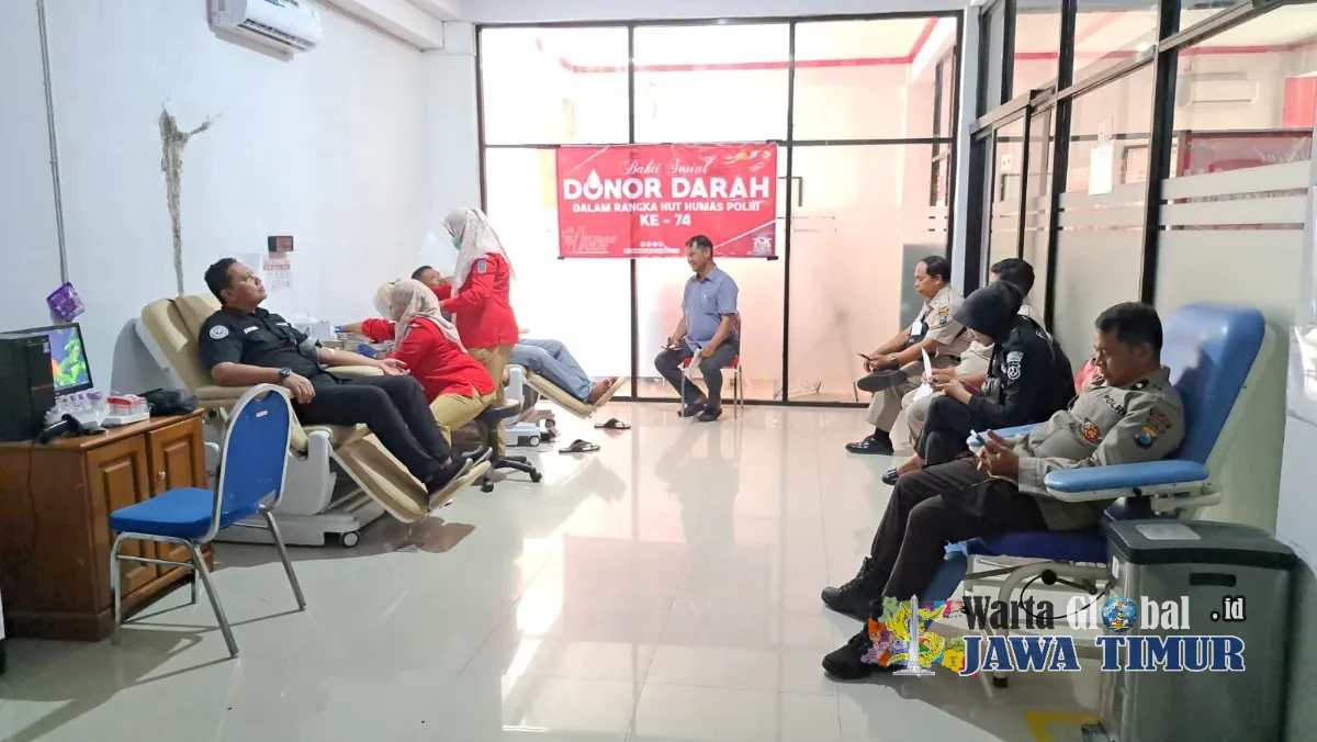 Dalam rangka menyambut Hari Ulang Tahun (HUT) Humas Polri ke-74 tahun 2025, Seksi Humas (Si Humas) Polres Nganjuk menggelar kegiatan bakti kemanusiaan donor darah di Kantor PMI Kabupaten Nganjuk, Rabu (22/10/2025).