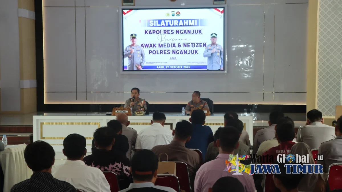 Polres Nganjuk menggelar kegiatan silaturahmi bersama wartawan dan netizen Nganjuk di Aula Tantya Sudhirajati Polres Nganjuk. Kegiatan yang dipimpin Kapolres Nganjuk AKBP Henri Noveri Santoso, S.H., S.I.K., M.M., tersebut turut dihadiri para pejabat utama (PJU) Polres Nganjuk, Rabu (29/10/2025).