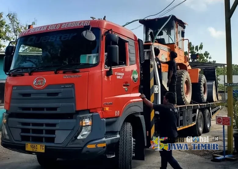 Truk yang dikemudikan oleh Samino, warga Desa Kunden, Kecamatan Bulu, Sukoharjo, melaju dari arah utara menuju selatan. MBF berdiri di sebelah alat berat di bagian belakang truk.