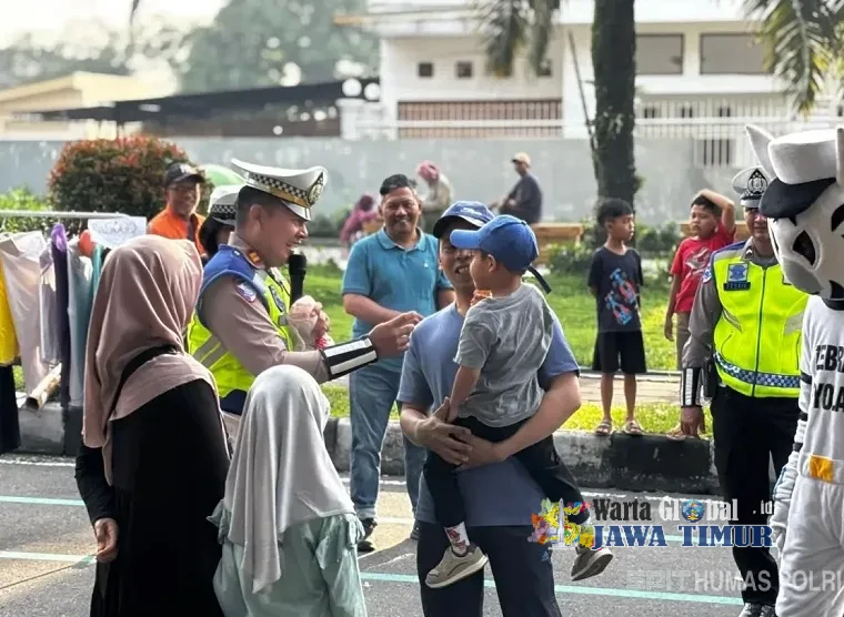Dengan gaya yang lebih segar, para petugas turun ke area CFD bersama maskot polisi lalu lintas, membagikan brosur keselamatan, dan mengajak warga berbincang santai. Pendekatan ramah seperti ini sengaja dipilih agar pesan keselamatan mudah diterima masyarakat dari berbagai usia—terutama anak-anak yang tampak antusias menikmati interaksi tersebut.