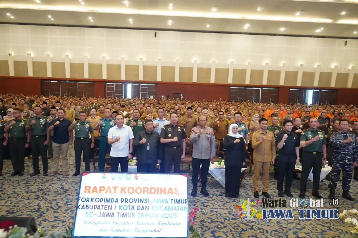 Turut hadir jajaran kepala daerah se-Jawa Timur, unsur TNI–Polri, serta instansi vertikal.