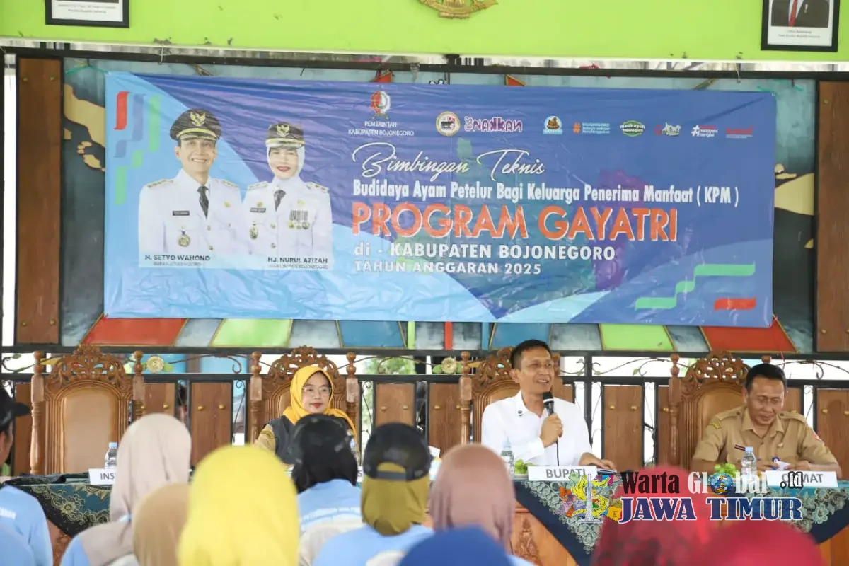 Bojonegoro – Bupati Bojonegoro, Setyo Wahono, secara resmi membuka kegiatan Pelatihan Gerakan Beternak Ayam Petelur Mandiri (GAYATRI) yang digelar di Balai Desa Pungpungan, Kecamatan Kalitidu, pada Senin (3/11/2025).
