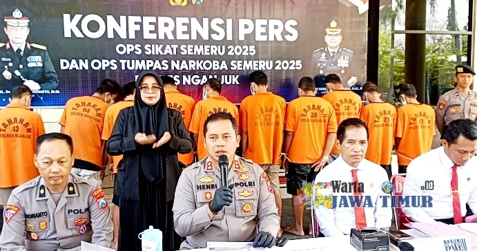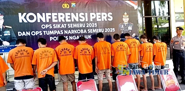 NGANJUK Warta Global Jatim.idKepolisian Resor (Polres) Nganjuk, Jawa Timur, berhasil mengungkap 21 kasus tindak pidana selama pelaksanaan Operasi Sikat Semeru 2025. Dari operasi tersebut, polisi mengamankan 16 tersangka dari berbagai kasus kejahatan.