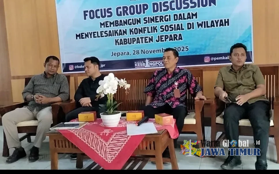 Upaya menjaga stabilitas daerah kembali ditegaskan Pemerintah Kabupaten Jepara melalui penyelenggaraan Focus Group Discussion (FGD) Penanganan Konflik Sosial di Masyarakat. Acara berlangsung mulai pukul 13.00 WIB di Aula Bakesbangpol dengan dihadiri para tokoh ormas, unsur intelijen, aparat penegak hukum, aktivis sosial, dan komunitas pers.