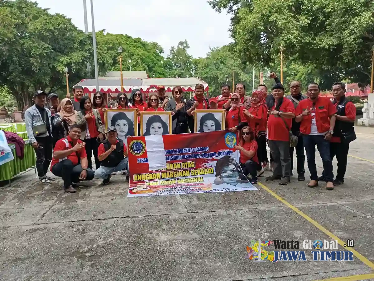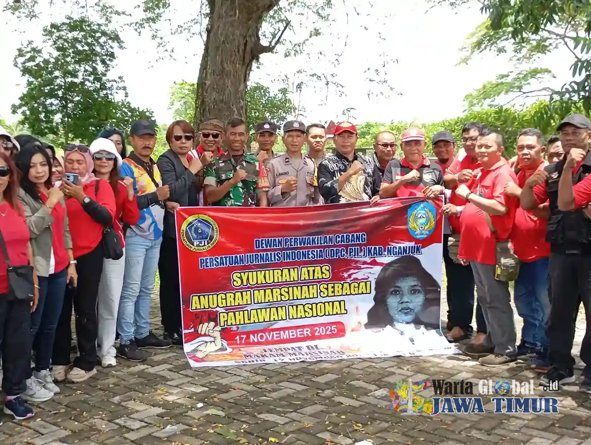 Nganjuk Warta Global Jatim.idDewan Pimpinan Cabang (DPC) ( Persatuan Jurnalis Indonesia ) PJI Kab Nganjuk, bersama anggota dan simpatisan masyarakat, melakukan konvoi bersama dari , pendopo kabupaten Nganjuk menuju makam Marsinah melakukan tabur bunga dan Do,a bersama. Senin, 17/ 11/ 2025.