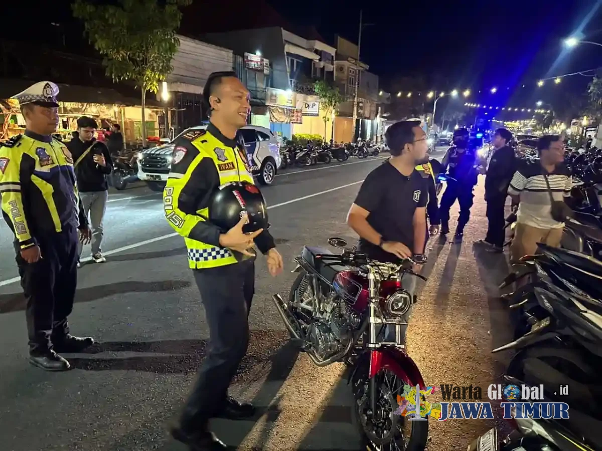 Kegiatan yang dimulai pukul 21.00 WIB ini dipimpin Kasat Lantas Polres Nganjuk AKP Ivan Danara Oktavian, S.Tr.K., S.I.K., M.H., dan turut dihadiri Wakil Bupati Nganjuk Trihandy Cahyo Saputro, S.T.