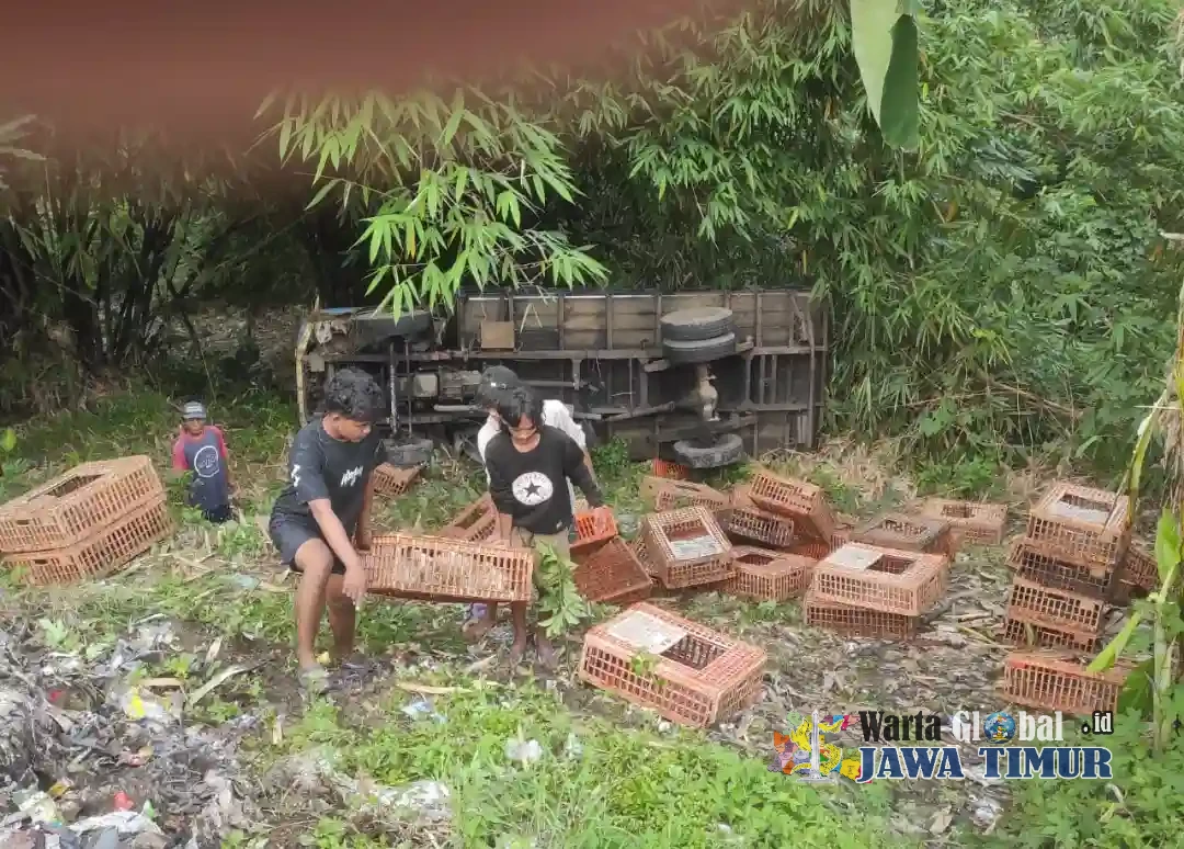 Proses evakuasi kendaraan dan ratusan ekor ayam yang sempat berhamburan telah ditangani oleh petugas bersama warga. (ARI)