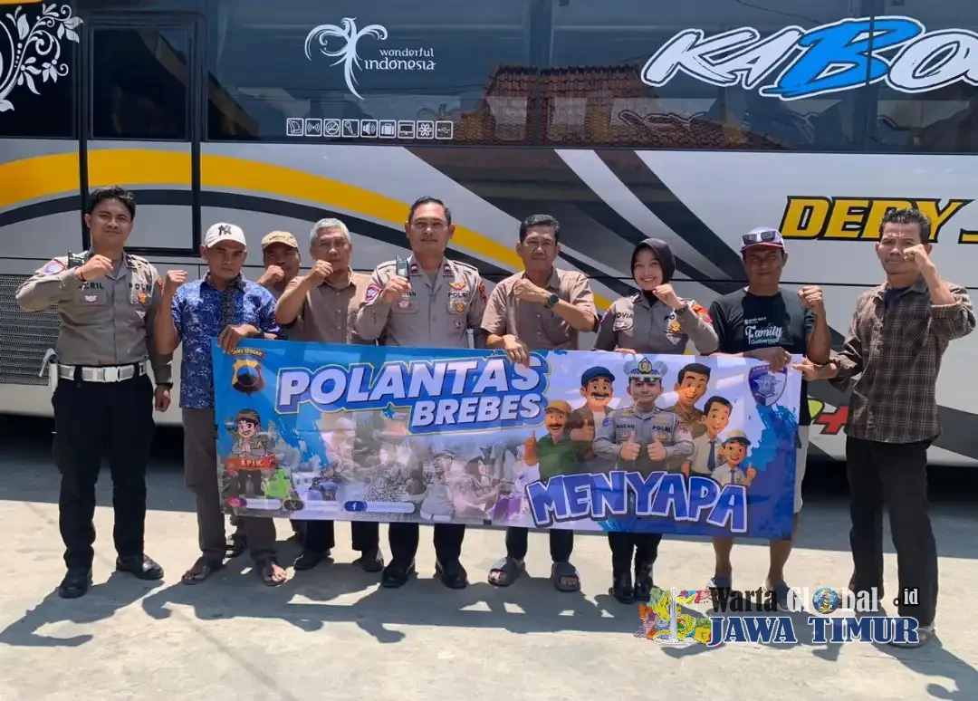 Satuan Lalu Lintas (Satlantas) Polres Brebes menggelar kegiatan "Polantas Menyapa Perusahaan Bus Pariwisata" di salah satu pool bus pariwisata di wilayah Brebes, Selasa (11/11/25).