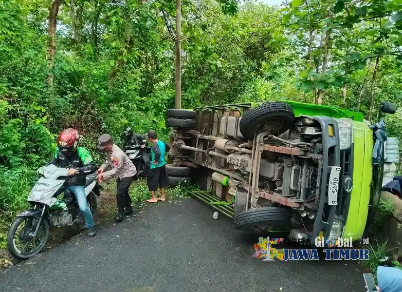 Sebuah truk bermuatan plastik perabot rumah tangga dengan nomor polisi W-8695-B mengalami kecelakaan tunggal di jalur tanjakan Jl. Raya Jatiroto–Tirtomoyo, tepatnya di Dusun Dawe Kidul, Desa Ngelo, Kecamatan Jatiroto, pada Selasa pagi, 11 November 2025, sekitar pukul 05.30 WIB.