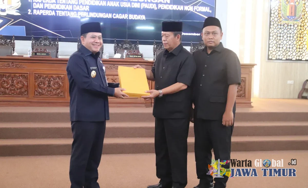 Ketua DPRD Kabupaten Pekalongan, Drs. H. Abdul Munir menyerahkan Dua Raperda Inisiatif, Fokus Pendidikan dan Perlindungan Cagar Budaya kepada Wakil Bupati Pekalongan Sukirman, Rabu (24/12/25)PEKALONGAN, WARTAGLOBAL.id --