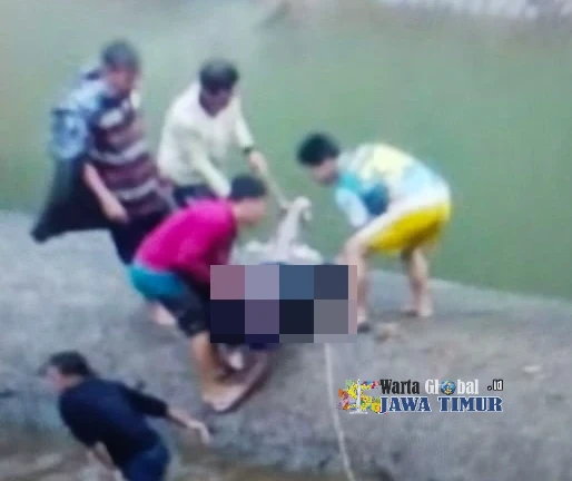 Warga Lebakbarang Pekalongan sedang melakukan evakuasi korban yang ditemukan tewas hanyut di Sungai Sengkarang.PEKALONGAN, WARTAGLOBAL.id --