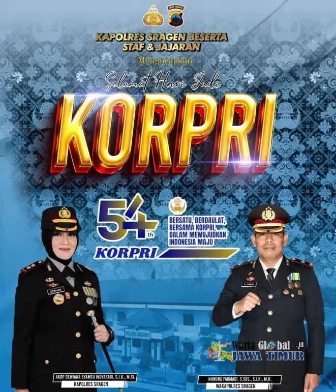 Dalam rangka memperingati Hari Ulang Tahun Korps Pegawai Republik Indonesia (Korpri) ke-54, Kapolres Sragen AKBP Dewiana Syamsu Indriyasti menyampaikan apresiasi mendalam kepada seluruh Aparatur Sipil Negara (ASN) yang bertugas di Polres Sragen.