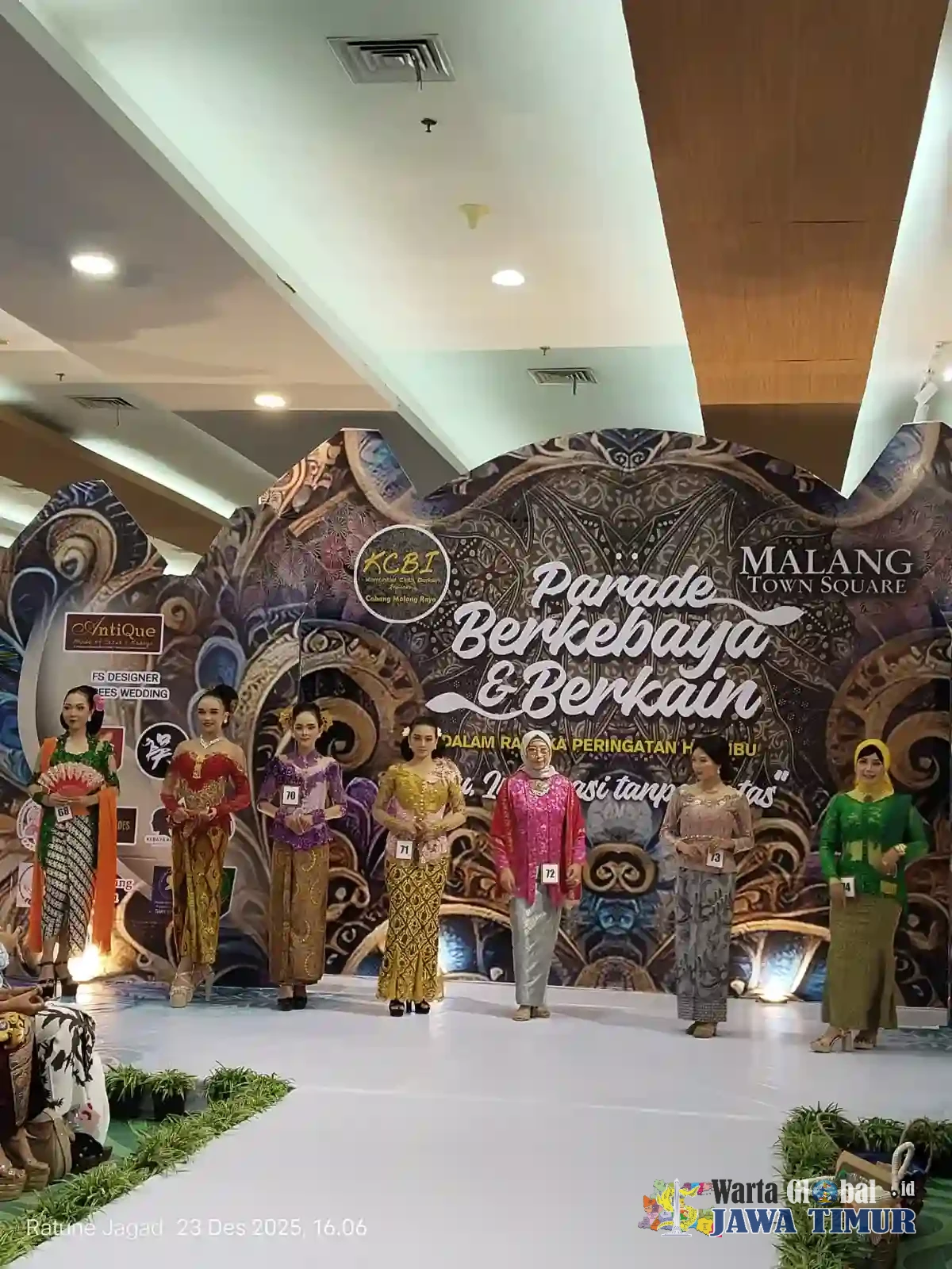 Jatim.wartaglobal.od | Malang Sebuah acara meriah memperingati Hari ibu digelar di Malang Town Square (Matos), Selasa (23/12/2025). Acara bertajuk "Parade Kebaya dari Komunitas Wanita Malang Raya" ini berlangsung sejak pukul 14.00 WIB hingga selesai dan dipadati pengunjung.
