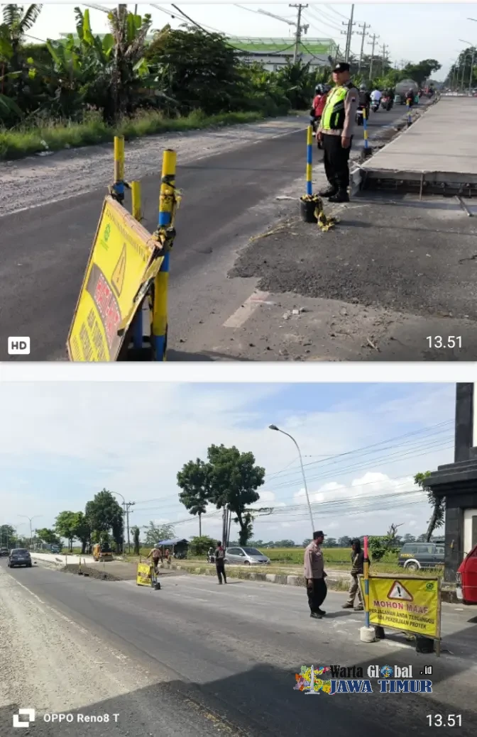 Petugas Satlantas Polres Karanganyar dan Polsek Kebakkramat melakukan Rekayasa Lalu Lintas Pengecoran Jalan Nasional Solo-Sragen.KARANGANYAR, WARTAGLOBAL.id --