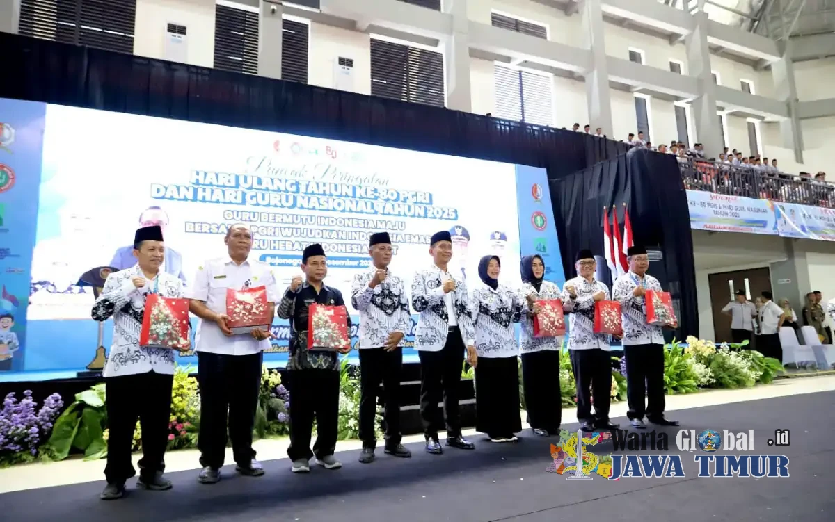 Bojonegoro —Jatim-Wartaglobal.id - Dalam rangka memperingati Hari Ulang Tahun (HUT) ke-80 dan Hari Guru Nasional 2025, Pemerintah Kabupaten Bojonegoro melalui bersama PGRI Kabupaten Bojonegoro menyelenggarakan Sarasehan Pendidikan bertema “Guru Bermutu Indonesia Maju, Bersama PGRI Wujudkan Indonesia Emas; Guru Hebat Indonesia Kuat”. Kegiatan digelar di GOR Utama Bojonegoro pada Rabu, 10 Desember 2025, dengan menghadirkan Keynote Speaker Sekretaris Umum PGRI Jawa Timur, .