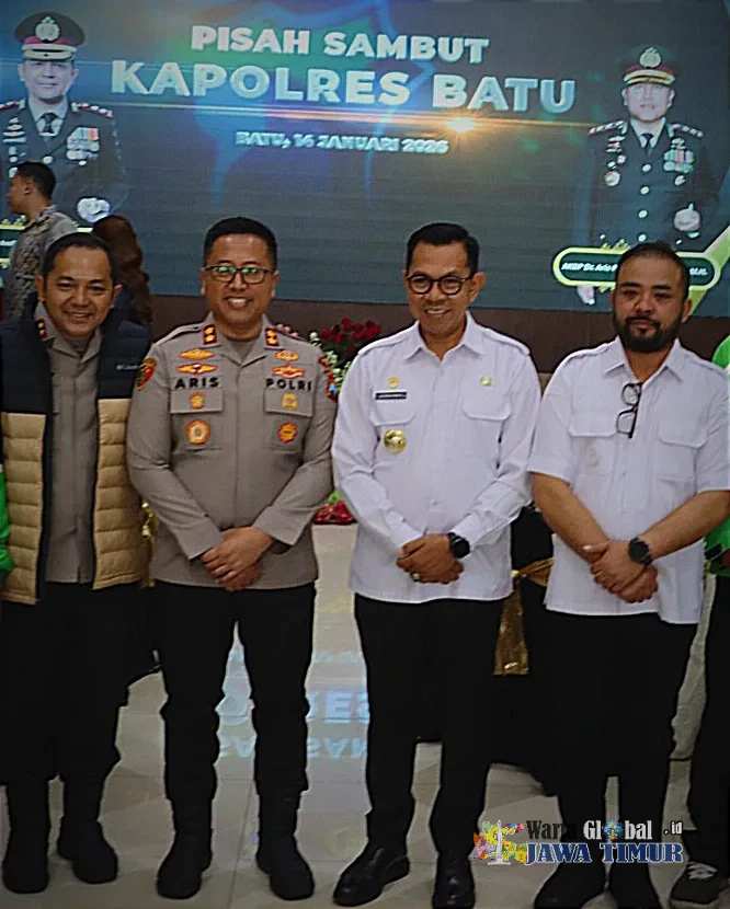 Jatim.wartaglobal.id|KOTA BATU, JAWA TIMUR – Pucuk pimpinan Kepolisian Resor (Polres) Batu resmi berganti tangan. AKBP Aris Purwanto kini sah mengemban amanah sebagai Kapolres Batu, menggantikan AKBP Andi Yudha Pranata, S.H., S.I.K., M.Si. Prosesi serah terima jabatan (sertijab) dilaksanakan dalam rangkaian acara pisah sambut khidmat pada Rabu (14/1/2026) pagi, bertempat di Graha Pancasila, Balai Kota Among Tani.