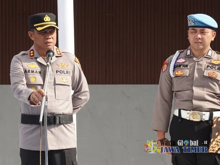 Kapolres Karanganyar, AKBP Arman Sahti (kiri) saat memimpin Apel Pagi di Lapangan Wira Satya Polres Karanganyar, Selasa (13/1/26).KARANGANYAR, WARTAGLOBAL.id --