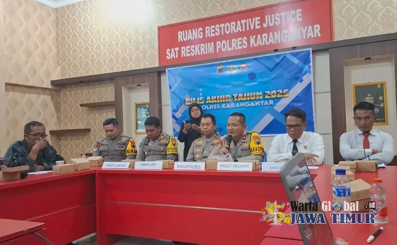 Gambaran tersebut disampaikan dalam rilis akhir tahun Polres Karanganyar yang digelar melalui konferensi pers di Mapolres Karanganyar, Rabu (31/12/2025). Kegiatan itu dipimpin Wakapolres Karanganyar Kompol Miftahul Huda dengan didampingi jajaran pejabat utama, antara lain Kasatlantas AKP Agista Ryan Mulyanto, Kasat Intelkam AKP Untung Basuki, Kasat Reskrim AKP Wikan Sri Kadiyono, serta Kabag Ops Kompol Dudi Pramudia.