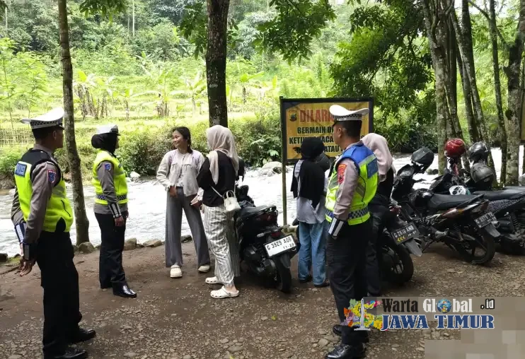 Petugas Polres Pekalongan Tetap Siaga menjaga sejumlah Lokasi Wisata, Sabtu (3/1/26) meskipun Operasi Lilin Candi telah berakhir.Petugas secara aktif menyisir lokasi wisata untuk memberikan imbauan langsung. Fokus utama petugas adalah keselamatan fisik pengunjung, terutama anak-anak yang bermain di sekitar obyek wisata.