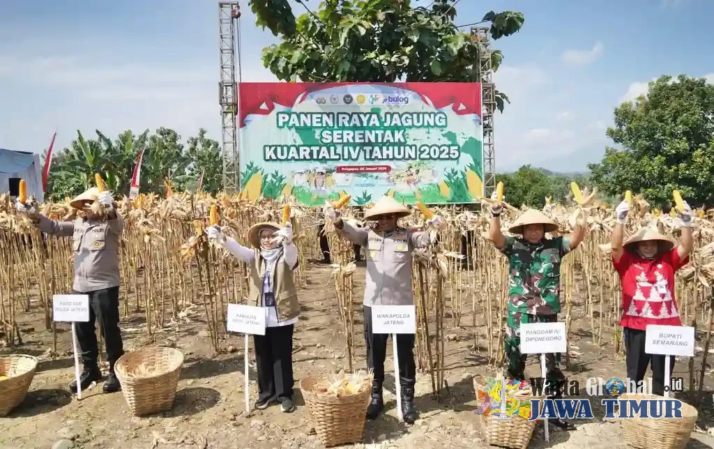 Polda Jawa Tengah terus menegaskan komitmennya dalam mendukung ketahanan pangan nasional. Hal tersebut diwujudkan melalui kegiatan Panen Raya Jagung Kuartal IV Tahun 2025 yang dilaksanakan Polres Semarang pada Kamis (8/1/2026), bertempat di lahan hutan sosial BKPH Jembolo Selatan, KPH Semarang, Desa Candirejo, Kecamatan Pringapus, Kabupaten Semarang, dengan luas lahan mencapai 3 hektare.