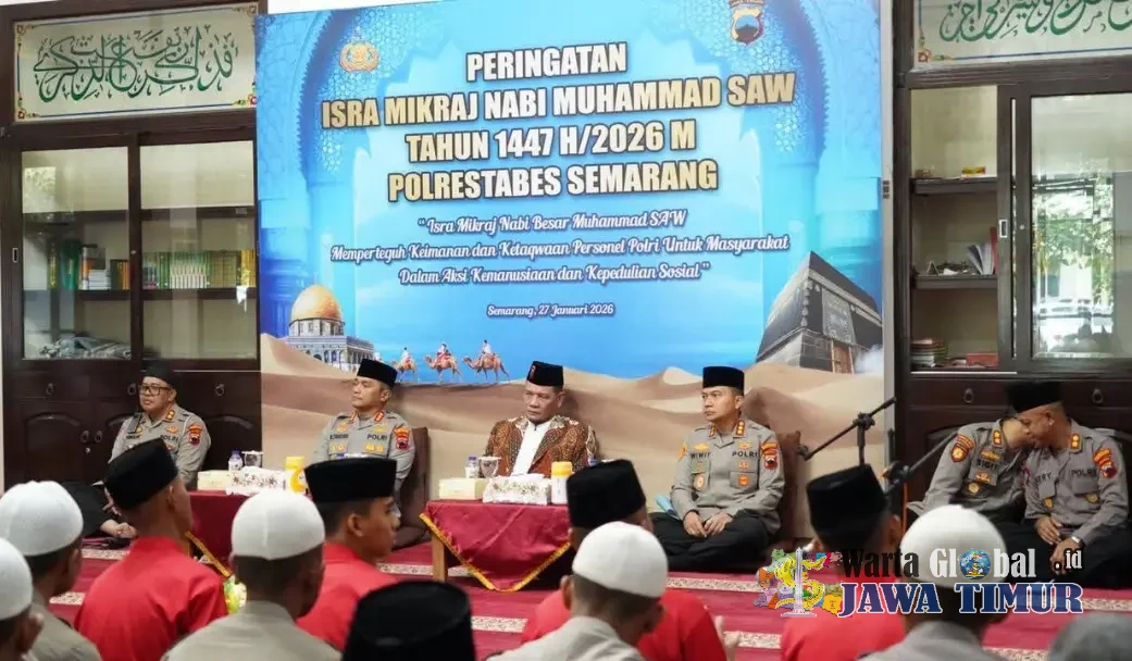 Kegiatan peringatan Isra Mi’raj Nabi Muhammad SAW di Polrestabes Semarang berlangsung dengan khidmat dan penuh kekhusyukan, sekaligus menjadi sarana pembinaan rohani untuk memperkuat karakter personel Polri yang religius dan berorientasi pada pelayanan masyarakat. (Hans)
