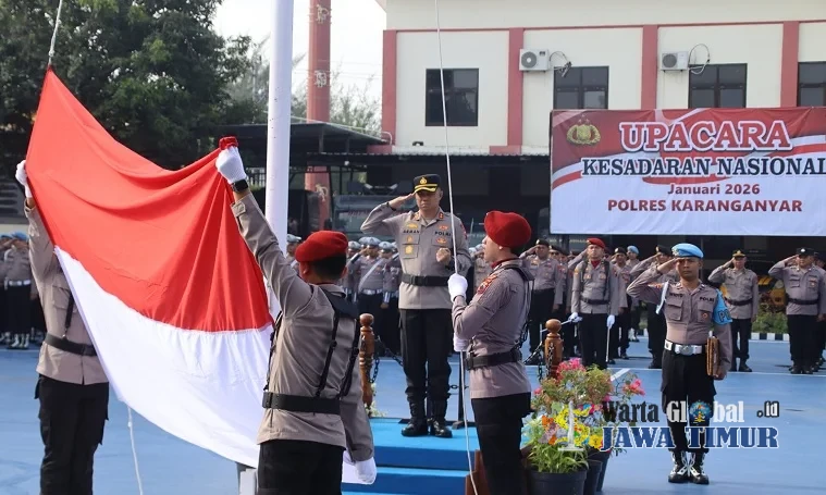 Kapolres Karanganyar, AKBP Arman Sahti, saat memimpin Upacara Kesadaran Nasional 2026, Senin (19/1/26).KARANGANYAR, WARTAGLOBAL.id --