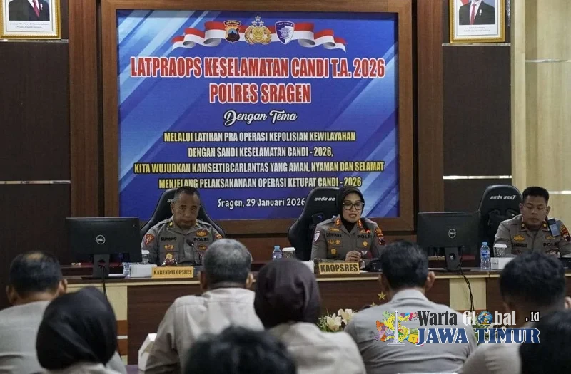 Kapolres Sragen, AKBP Dewiana Syamsu Indyasari, memimpin LatPra Ops Keselamatan Candi 2026, Kamis (29/1/26).SRAGEN, WARTAGLOBAL.id --