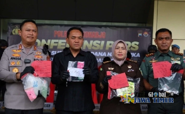 Kapolres Sukoharjo, AKBP Anggaito Hadi Prabowo (kiri) memperlihatkan Barang Bukti Narkoba Bersama Pejabat Utama dan Kasatnarkoba, Rabu (7/1/26).SUKOHARJO, WARTAGLOBAL.id --