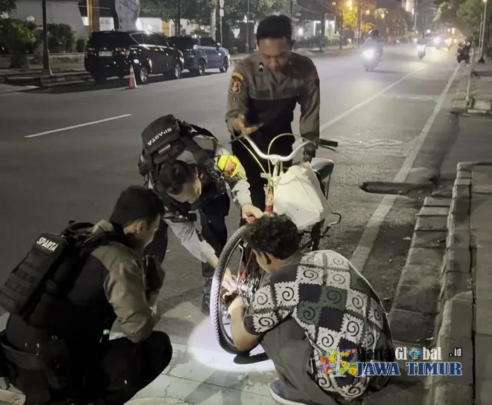 Tim Sparta Polresta Surakarta Tunjukkan Kepedulian, Bantu Warga Perbaiki Sepada di Sekitar Stadion Sriwedari, Senin (5/1/26) malam.SURAKARTA, WARTAGLOBAL.id --