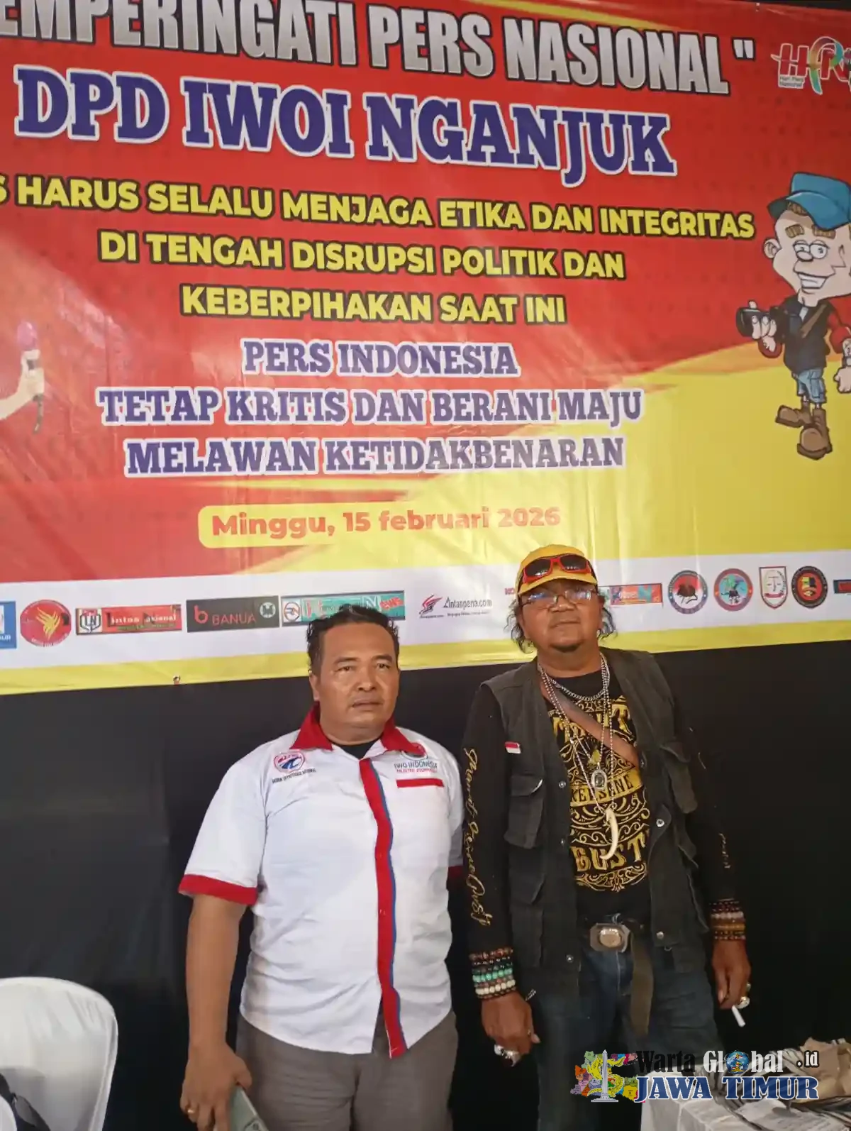 Dewan Pimpinan Daerah (DPD) Aliansi Wong Gawat(AWG) Kabupaten Nganjuk menyampaikan ucapan selamat dan sukses atas pelaksanaan Hari Pers Nasional (HPN) Tahun 2026 yang digelar di Kecamatan Baron, Kabupaten Nganjuk. Penyampaian ini dilakukan di markas DPD Ikatan Wartawan Online Indonesia (IWOI) Kabupaten Nganjuk.