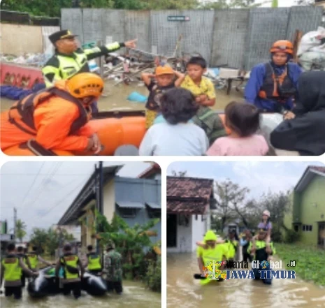 Petugas Gabungan melakukan Evakuasi Ratusan Warga Siwalan yang terendam Banjir ke Tiga Posko Pengungsian, Kamis (5/2/26).Hingga siang ini, tercatat sedikitnya 129 warga telah berhasil dievakuasi dan ditempatkan di beberapa posko darurat yang disediakan pemerintah setempat.