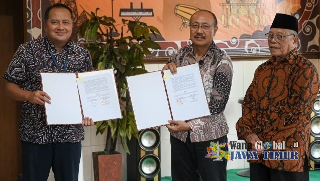 Pemimpin Bank Jateng Cabang Jakarta Anugrah Sigit Yanuar dan Ketua Umum Ikatan Kerukunan Keluarga Glagahombo (IKKG) Sudadi menunjukkan dokumen Perjanjian Kerja Sama di Jakarta Timur, Rabu (21/1/2026).JAKARTA, WARTAGLOBAL.id --