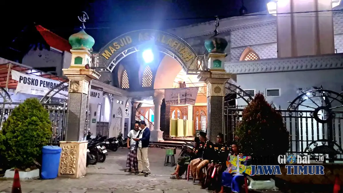Warta Global Jatim.id - Rungkut Surabaya banser kedung asem giat pengamanan ibadah sholat tarawih di masjid assalafiyah kedung asem minggu (22/2/2026) malam. Pengamanan dimulai sekira pukul 19.00 WIB atau sebelum solat isya berlangsung hingga seluruh rangkaian ibadah sholat tarawih usai.