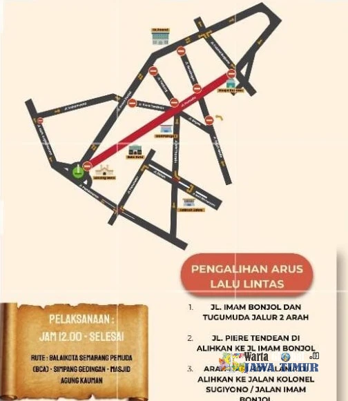 Guna kelancaran prosesi acara, Dinas Perhubungan (Dishub) Kota Semarang bersama Satlantas Polrestabes Semarang, akan memberlakukan pengalihan arus lalu lintas mulai pukul 12.00 WIB hingga kegiatan selesai.