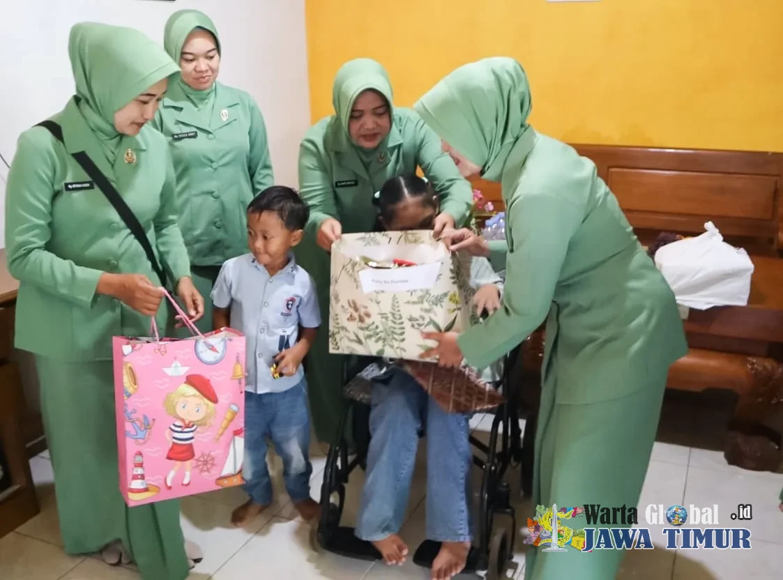 BOJONEGORO - Jatim. Wartaglobal. Id- Persit Kartika Chandra Kirana (KCK) Cabang XXVIII Kodim 0813 Bojonegoro, melaksanakan kegiatan anjangsana kepada Anak Berkebutuhan Khusus (ABK) dan Keluarga Besar TNI (KBT) yang sedang sakit. Pada kegiatan itu, anggota Persit KCK Cabang XXVIII Kodim 0813 Bojonegoro juga memberikan bantuan sosial berupa 30 paket sembako kepada warga kurang mampu, dan tali asih untuk anak yatim.