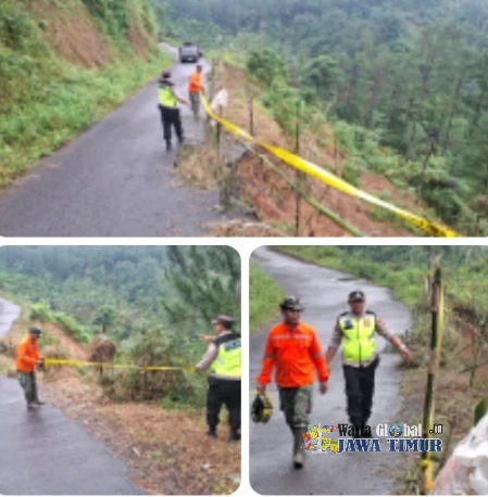 Petugas Patroli Antisipasi Bencana, Polsek Paninggaran Temukan Titik Longsor dan Pasang Police Line di Jalur Desa Werdi, Rabu (11/2/26).PEKALONGAN, WARTAGLOBAL.id --