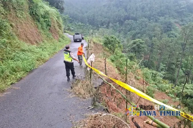 "Saat anggota melaksanakan patroli antisipasi bencana alam, ditemukan titik longsor di ruas jalan kabupaten wilayah Desa Werdi. Kondisi aspal jalan ada yang sebagian terdampak longsor akibat guyuran hujan lebat, sehingga sangat membahayakan," ujarnya.
