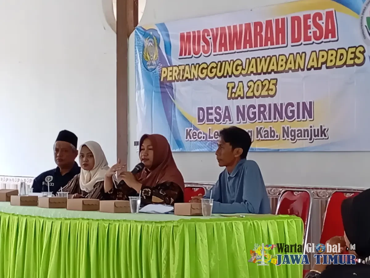 6 Februari 2026 - Balai Desa Ngringin, Kecamatan Lengkong, Kabupaten Nganjuk, menjadi tempat pelaksanaan rapat pertanggung jawaban Anggaran Pendapatan dan Belanja Desa (APBDes) Tahun 2025 pada Jum'at (6/2). Acara dihadiri oleh seluruh jajaran Pemerintah dan Lembaga Desa Ngringin, Forkopincam Kecamatan Lengkong, masyarakat desa, serta tokoh-tokoh masyarakat Ngringin.