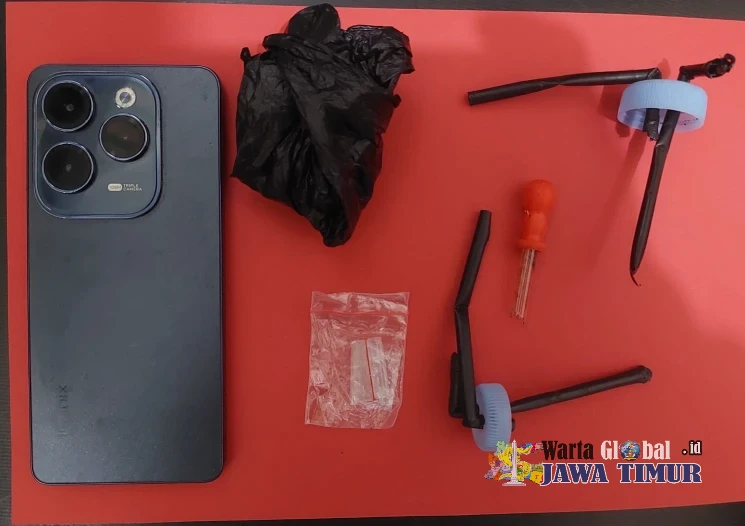 Selain paket sabu, petugas juga menyita sejumlah barang bukti pendukung lainnya, di antaranya 1 buah pipet kaca, 1 buah plastik kresek warna hitam, 2 buah tutup botol yang sudah dimodifikasi dengan sedotan (bong) dan 1 unit ponsel merek Infinix Hot 40 Pro warna hitam.