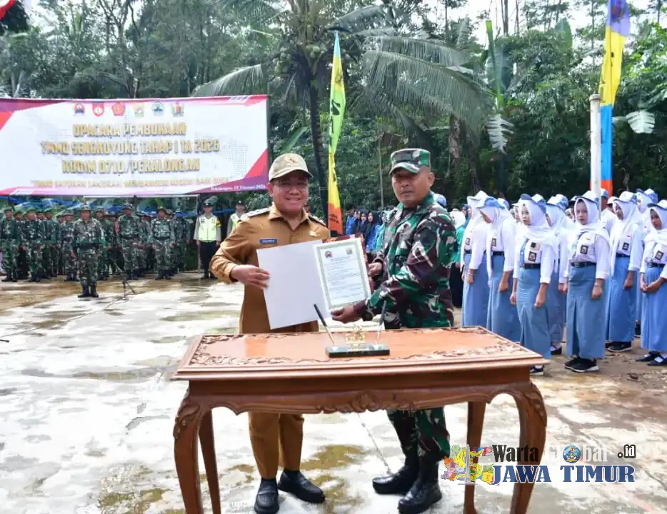 Pembukaan TMMD ditandai dengan penandatanganan program kegiatan oleh Wakil Bupati Pekalongan bersama Perwira Pengubung Kodim 0710 Pekalongan.