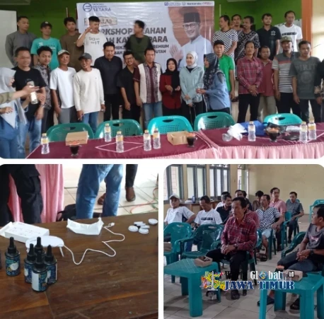 Angga Arsa dan puluhan pelaku UMKM peraktik langsung membuat berbagai macam olahan limbah yang berbahan kayu dan resin di aula kantor Desa Sekuro, Mlonggo, Jepara, 6/2/2026.JEPARA, WARTAGLOBAL.id --