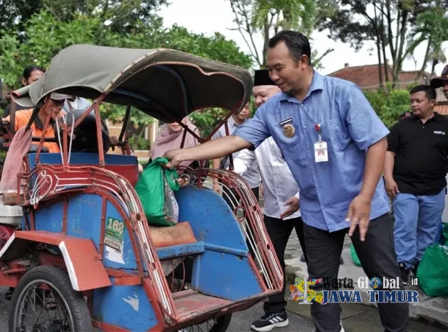 Bupati Sragen, Sigit Pamungkas saat menyalurkan Paket Sembako Ramadan kepada Tukang Becak, Jumat (6/3/26).SRAGEN, WARTAGLOBAL.id --