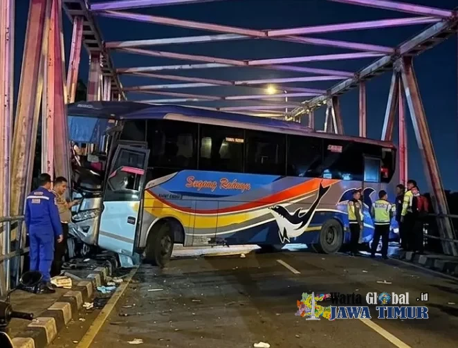 “Namun karena di lajur kiri terdapat sepeda motor yang berhenti, sopir bus banting setir ke kanan untuk menghindar. Akhirnya kehilangan kendali dan menabrak pembatas jembatan,” jelasnya.